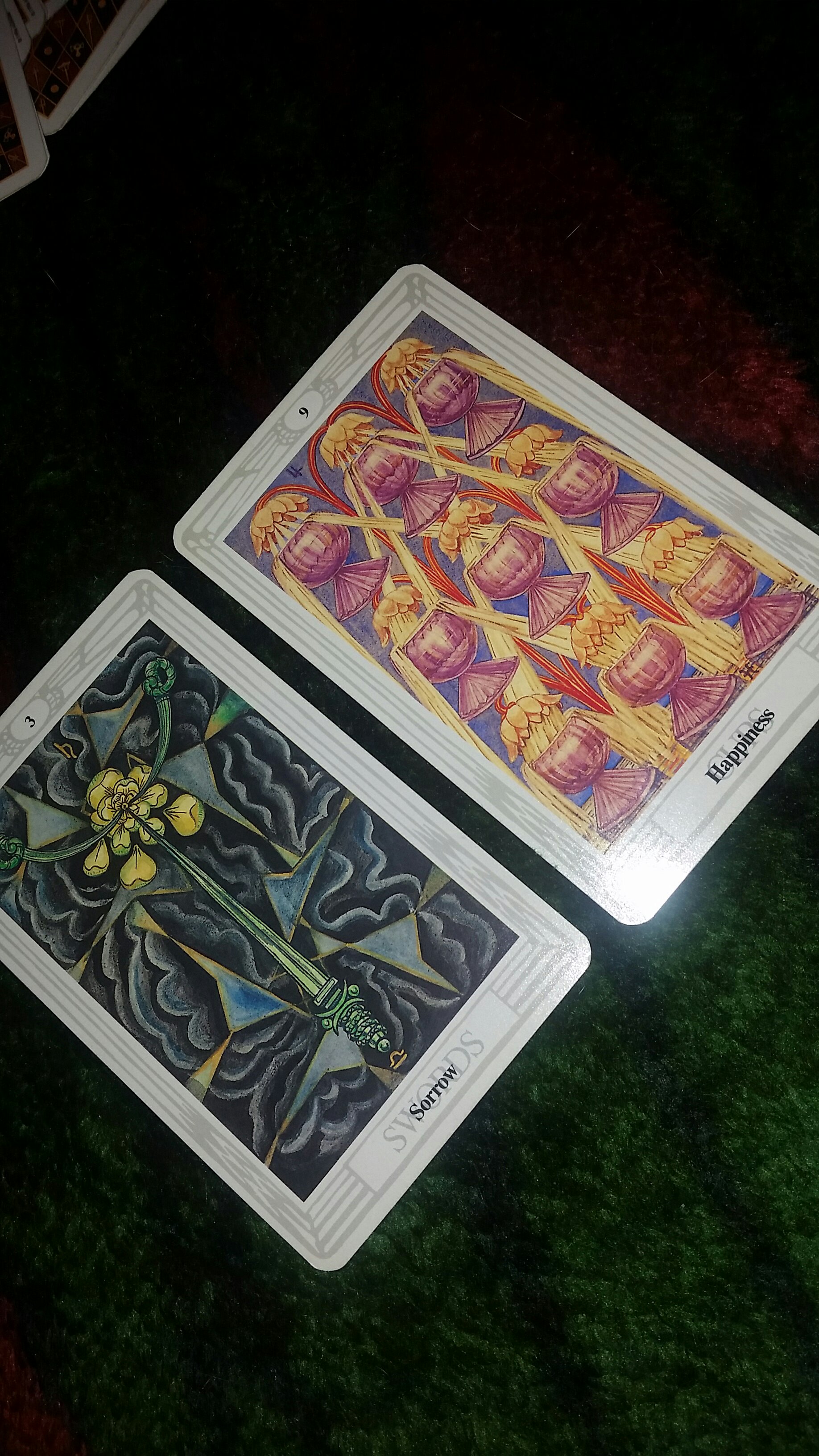 Sorrow, 3 of swords. This month will take sorrow and sadness that I’ve had for a few away. It will put me in a better frame of mind, something I have been looking forward to for a long, long time.
