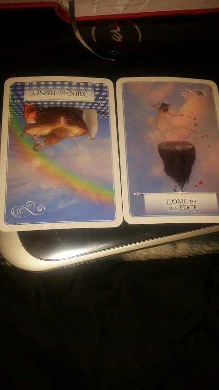 Before I began my meditation. I was told to pick 2 cards. Milk and honey protection pose (irony), and Come to the Edge.